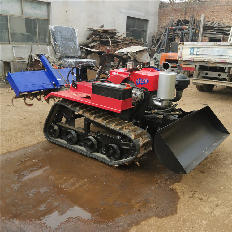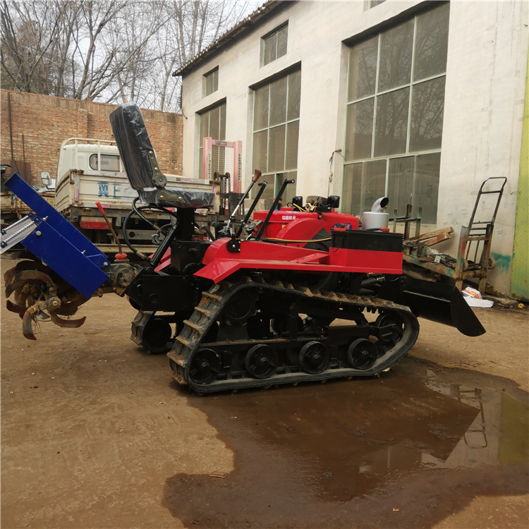 产品详情:一种新型的车载履带式果园管理机;产品基准配置:旋耕,除草,开沟和回填还可以起垄和推土;稳固的抓地力,不错的稳定性,通过性强,适用于各种类别的地势。客户可以根据不同的田地类别选项不同宽度的履带式耕作机。