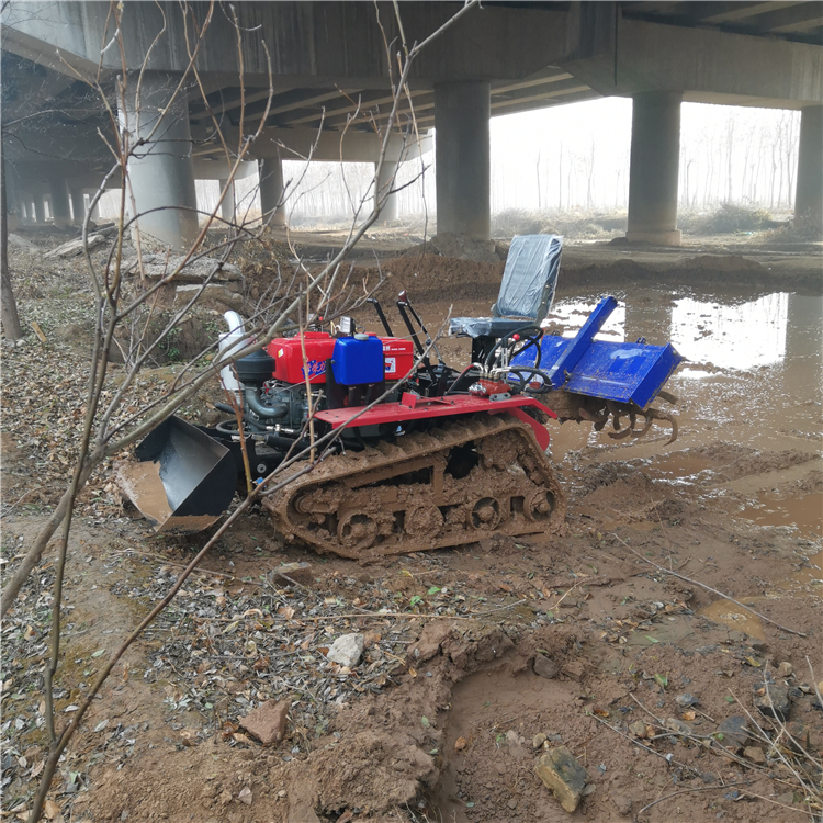 产品详情:一种新型的车载履带式果园管理机;产品规格配置:旋耕,除草,开沟和回填还可以起垄和推土;结实的抓地力,不错的稳定性,通过性强,适用于各种种类的地貌。客户可以根据不同的农田类别选取不同宽度的履带式耕作机。