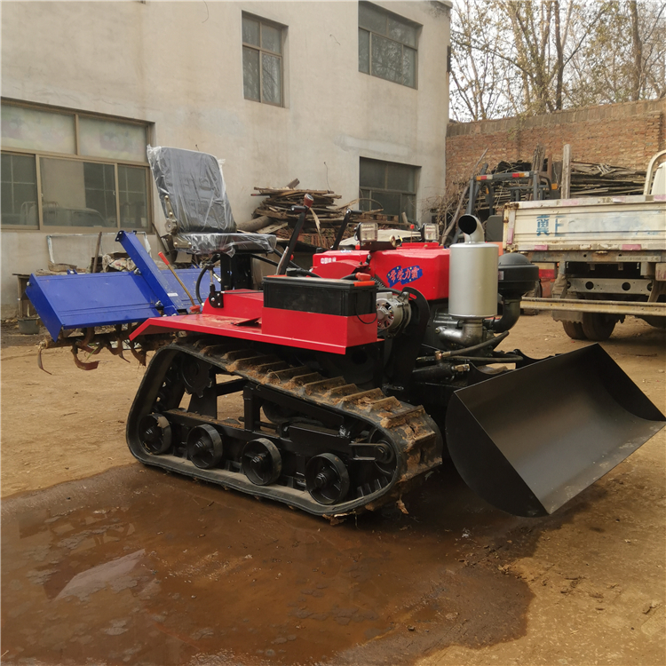 产品详情:一种新型的车载履带式果园管理机;产品标准化配置:旋耕,除草,开沟和回填还可以起垄和推土;结实的抓地力,不错的稳定性,通过性强,适用于各种类别的地貌。客户可以根据不同的农田种类选取不同宽度的履带式耕作机。