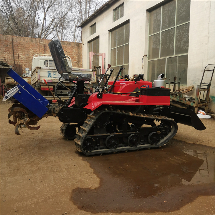产品详情:一种新型的车载履带式果园管理机;产品规范配置:旋耕,除草,开沟和回填还可以起垄和推土;坚实的抓地力,不错的稳定性,通过性强,适用于各种种类的地势。客户可以根据不同的耕地类别选取不同宽度的履带式耕作机。